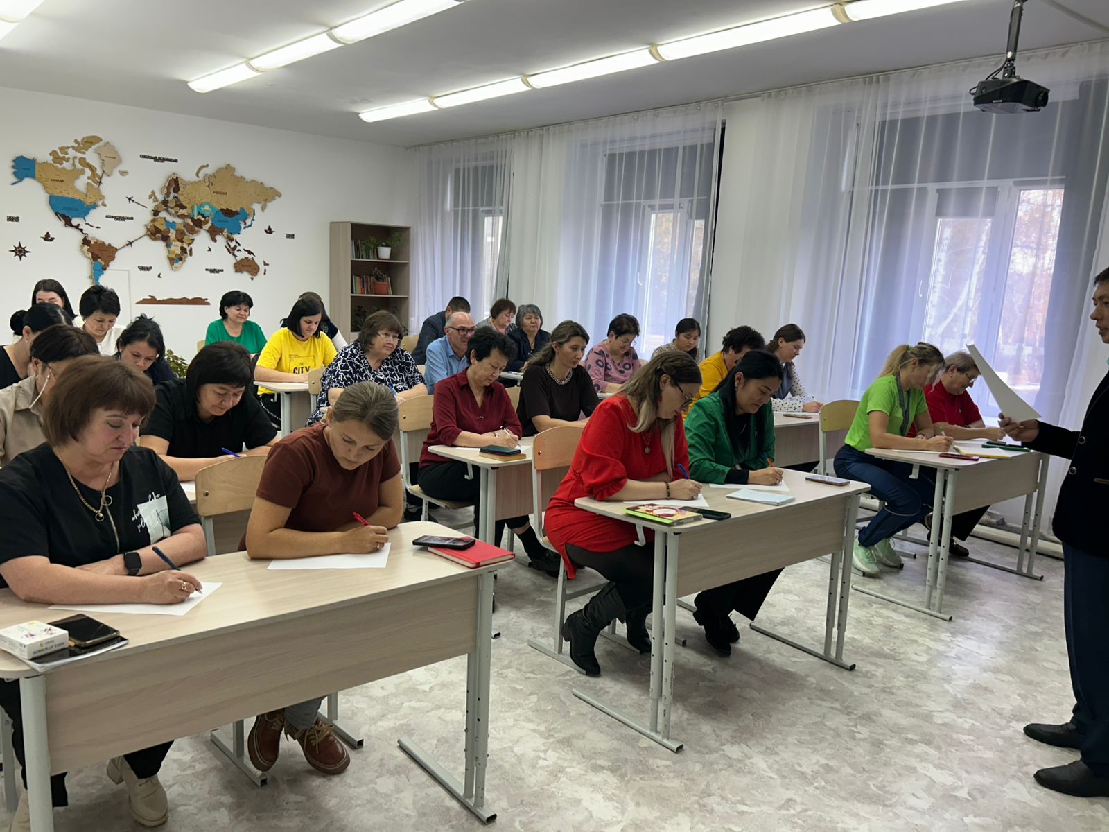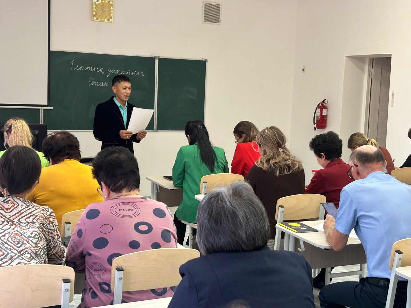 Ұстаздар мемлекеттік тілді қолдау, сауаттылық деңгейін арттыру және жазбаша сөйлеу мәдениетін дамыту мақсатында ұйымдастырылған Ұлттық диктантқа белсене қатысты. 💬📖