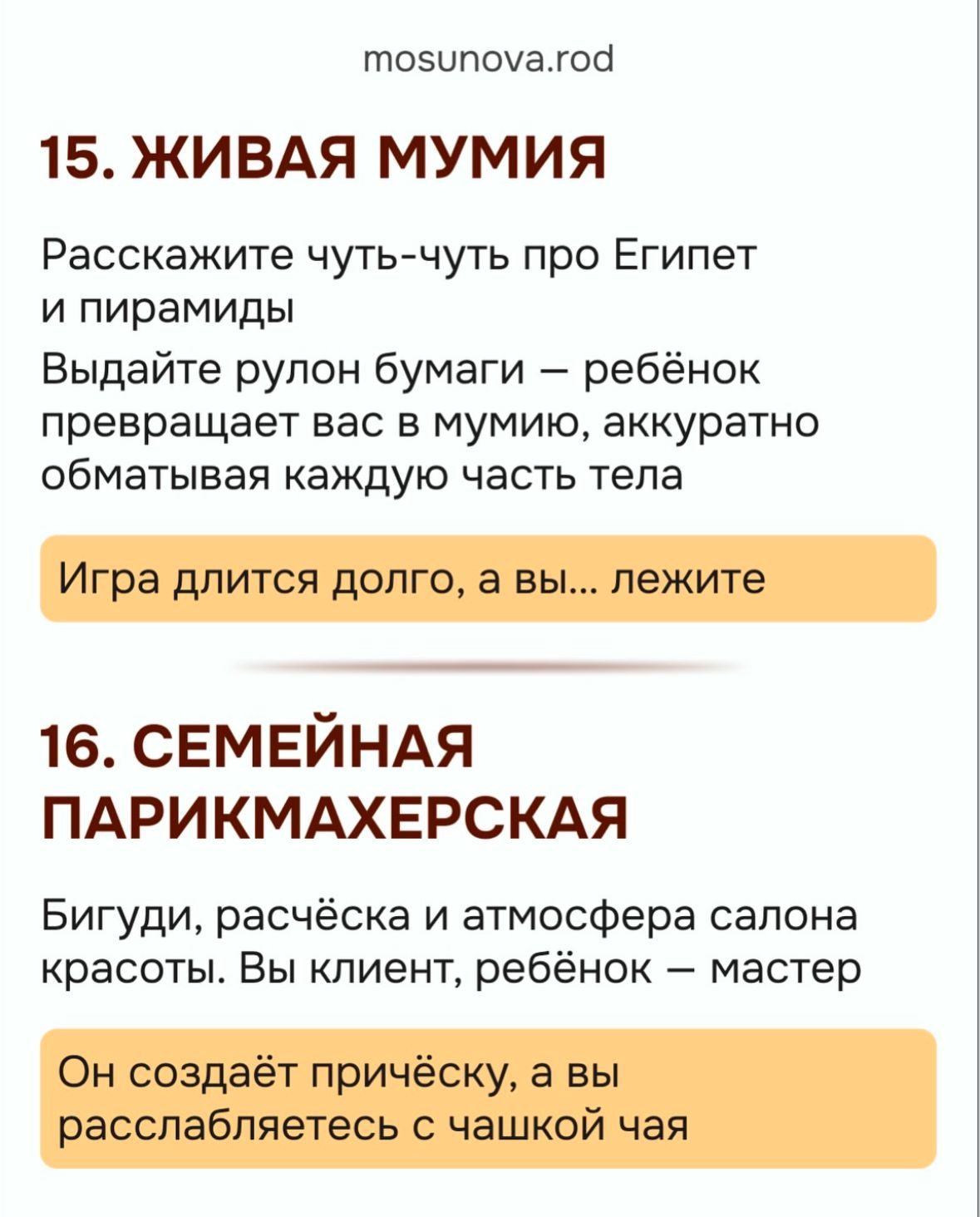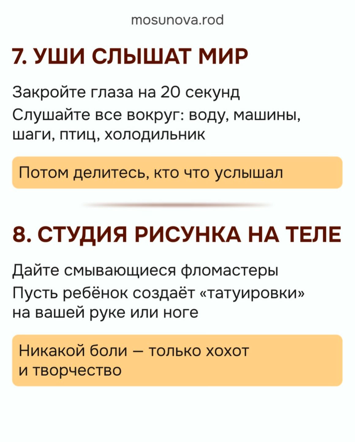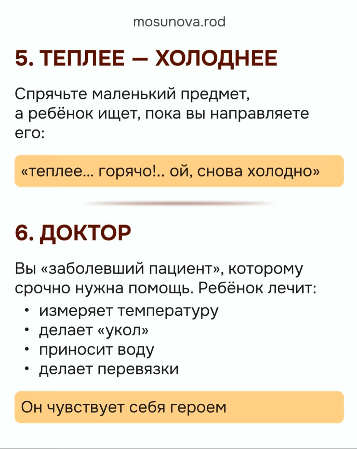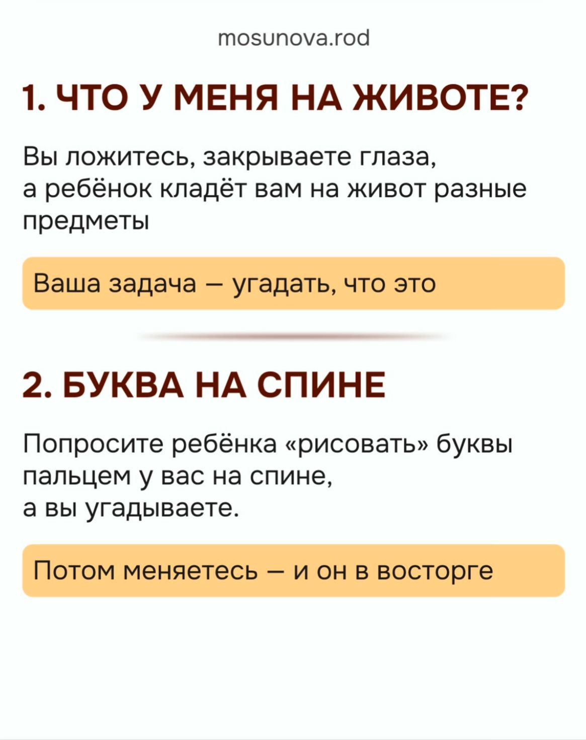 Біз қарапайым әрі қолжетімді ойындарды дайындадық, олар баламен байланысты нығайтуға көмектеседі, балаға бақыт пен қауіпсіздік сезімін сыйлайды, ал сізге — сәл күш, тыныштық пен сенімділік әкеледі.