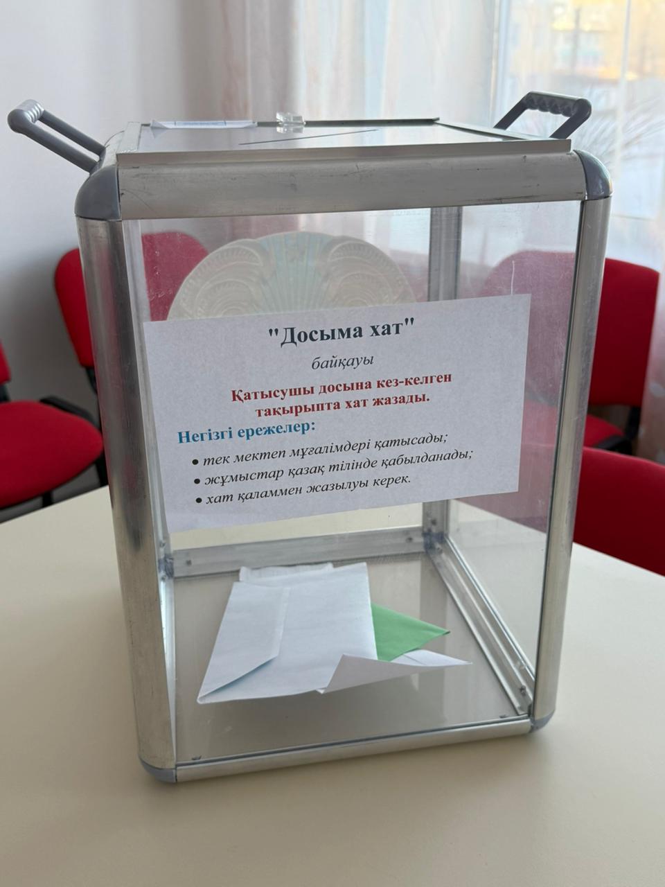 📬 Қатысушы кез келген тақырыпта өзінің әріптес-досына хат жазып, арнайы жәшікке салады.