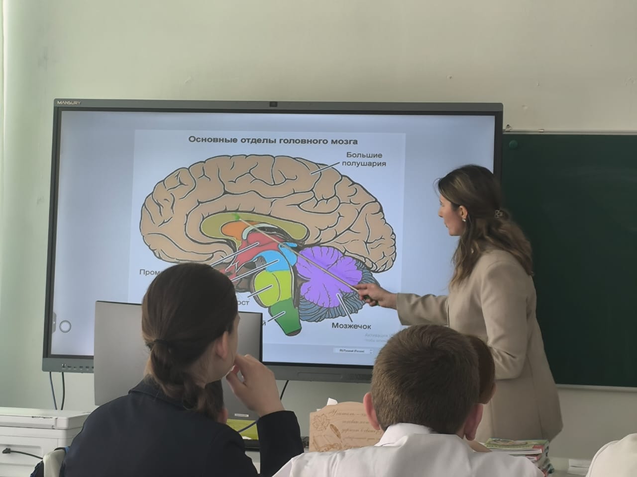 Практикалық бөлім ерекше қызығушылық тудырды. Жетінші сынып оқушылары өздерін нейрохирург ретінде сезініп, берілген белгілерді талдады, науқастың диагнозын анықтады және мидың қай бөлігінің қызметі бұзылғанын тапты.