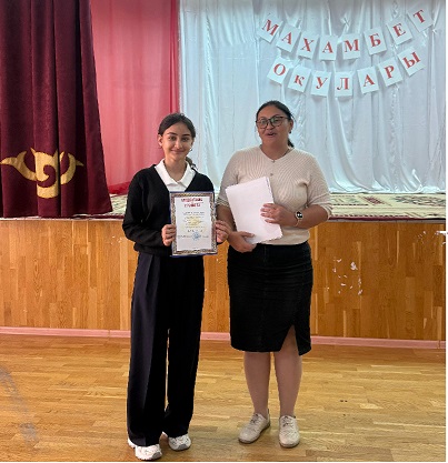 В номинации «Ұлы арман» нашу школу представили ученица 9 класса Прутникова Таисия (учитель – Даулбаева К.М.) и ученицы 10 класса Галстян Улета и Лантух Кира (учитель – Абжалелова Л.И.), которые заняли призовые места.