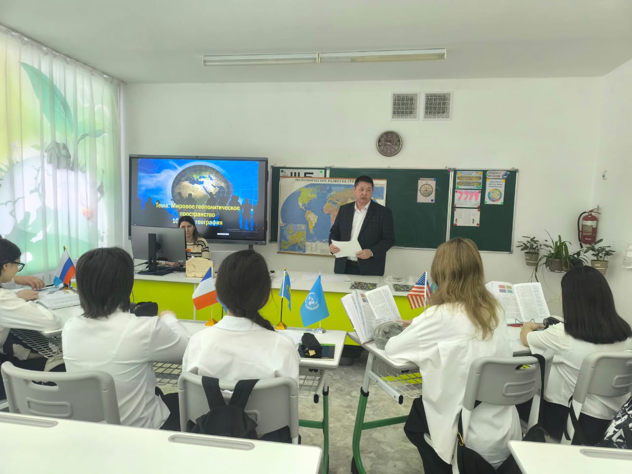 Сегодня в 10-м классе прошёл открытый урок по географии на тему «Мировое геополитическое пространство», который провёл Шаяхметов Серик Сайлыбаевич.