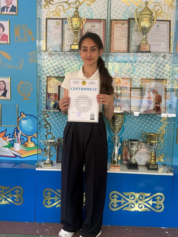 Наша ученица 10 класса Галстян Улета приняла участие в областном туре республиканского конкурса «Махамбет оқулары»! 🎉