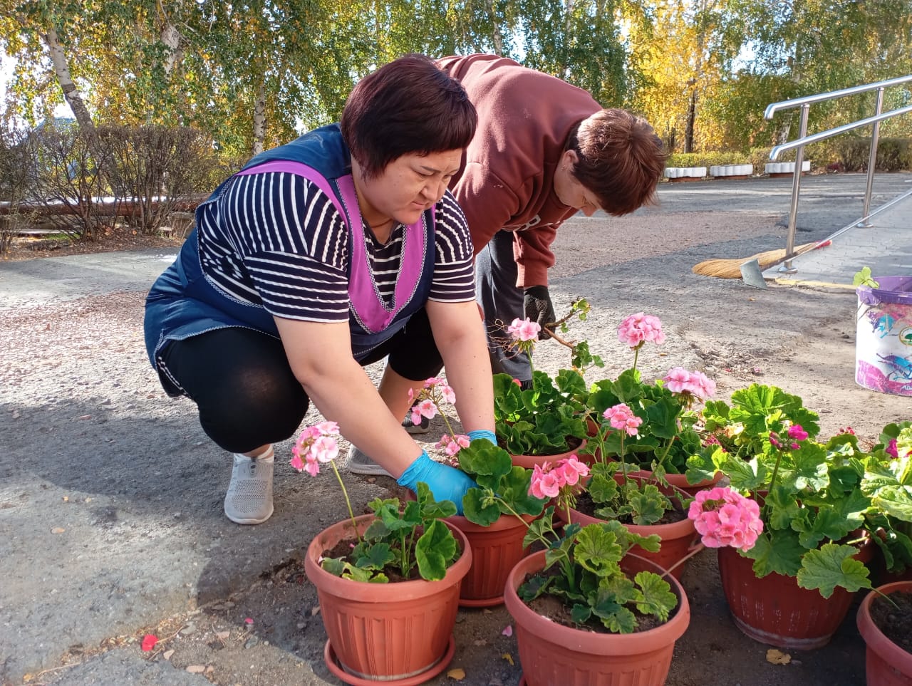 На этой неделе сотрудники школы организовали уборку территории школы 🏫 и привели в порядок клумбы 🌸🌿, где радуют глаз цветущие растения.