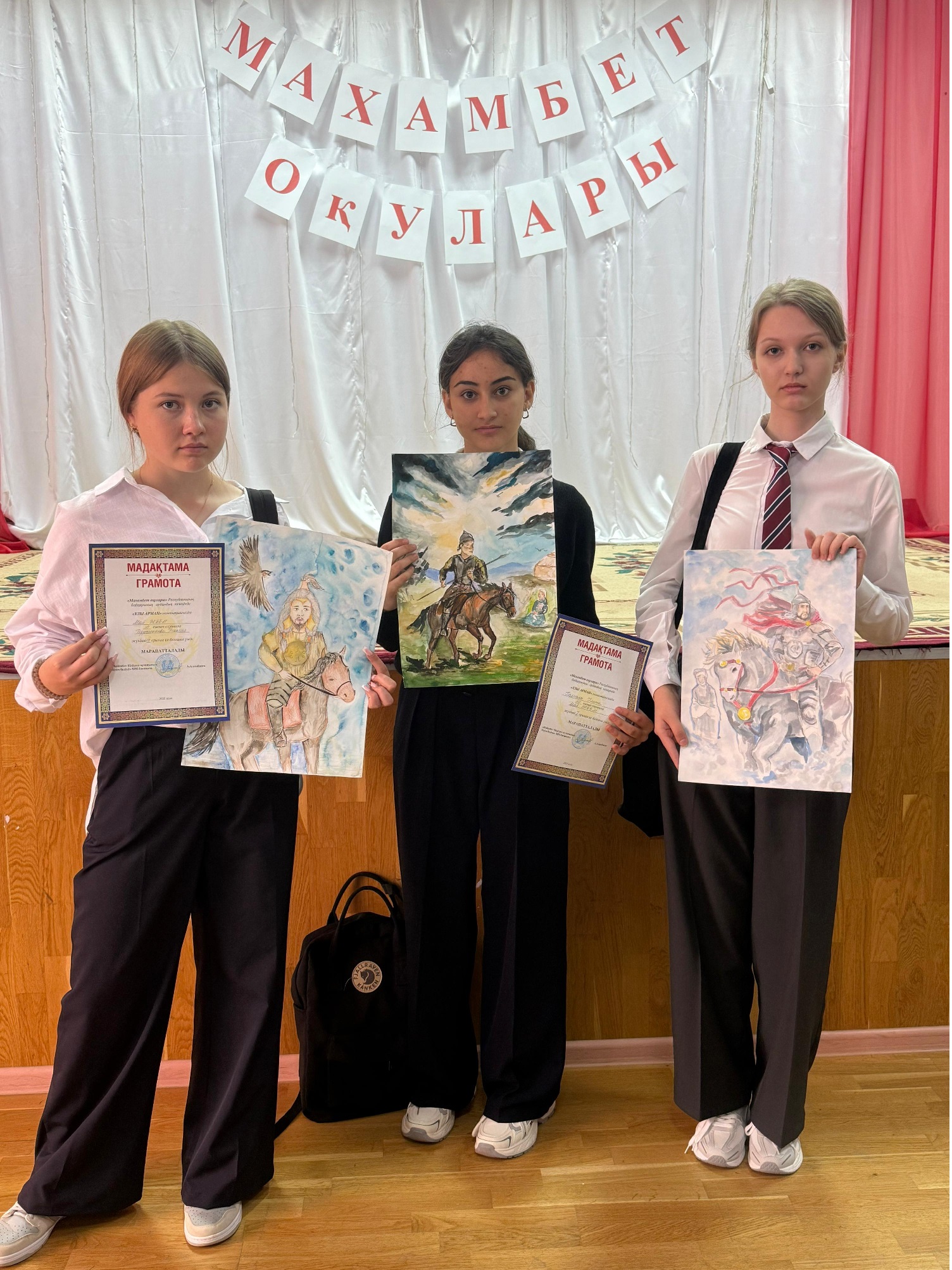 В номинации «Ұлы арман» нашу школу представили ученица 9 класса Прутникова Таисия (учитель – Даулбаева К.М.) и ученицы 10 класса Галстян Улета и Лантух Кира (учитель – Абжалелова Л.И.), которые заняли призовые места.