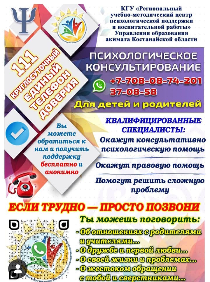 В Региональном центре психологической поддержки и воспитательной работы также можно получить соответствующую помощь, позвонив по телефонам: +7 708 0874201, 8 7142 37 08 58.