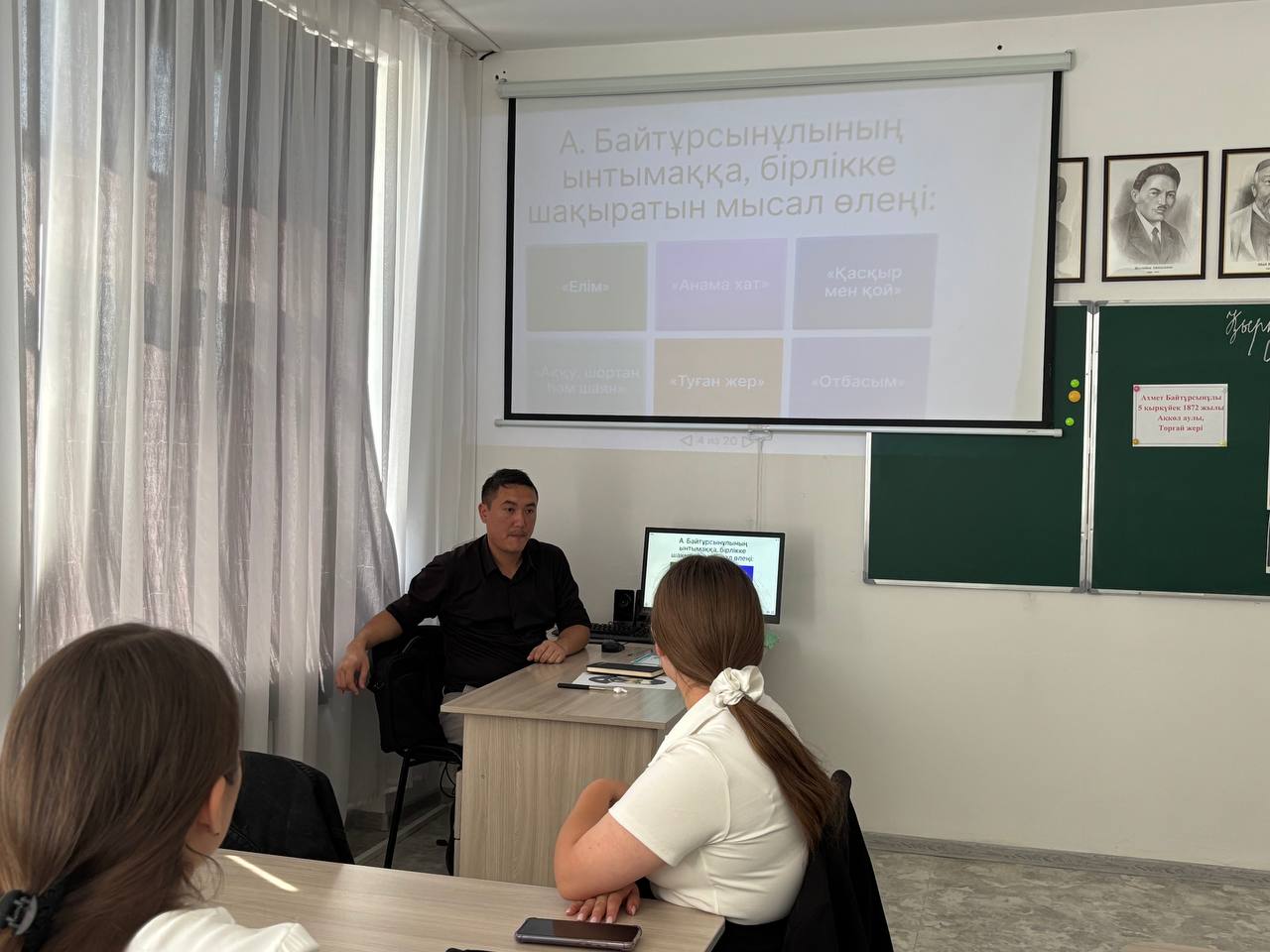Ко дню рождения великого просветителя и реформатора Ахмета Байтурсынова в 11 классе прошла увлекательная интерактивная игра-викторина, подготовленная и проведённая заместителем директора по воспитательной работе.