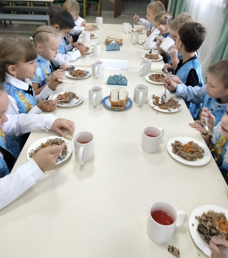 ✨ Обед получился сбалансированным: овощи, мясо, гарнир и напиток — всё для энергии и хорошего самочувствия школьников.