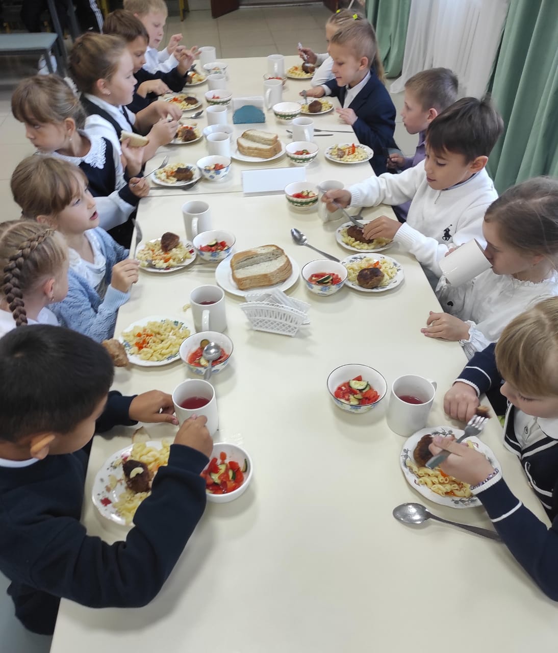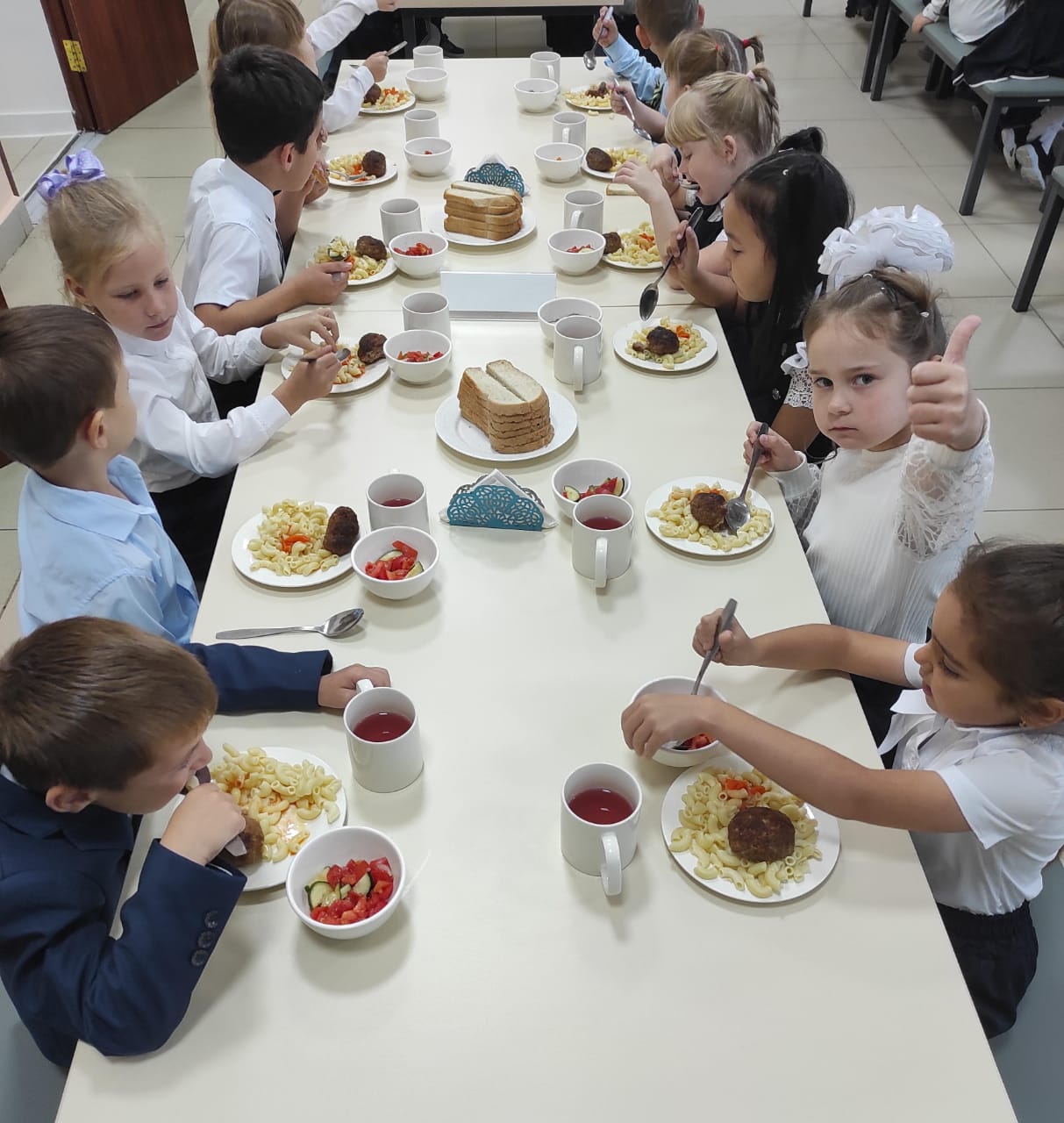 ✨ Обед получился сбалансированным: овощи, мясо, гарнир и напиток — всё для энергии и хорошего самочувствия школьников.